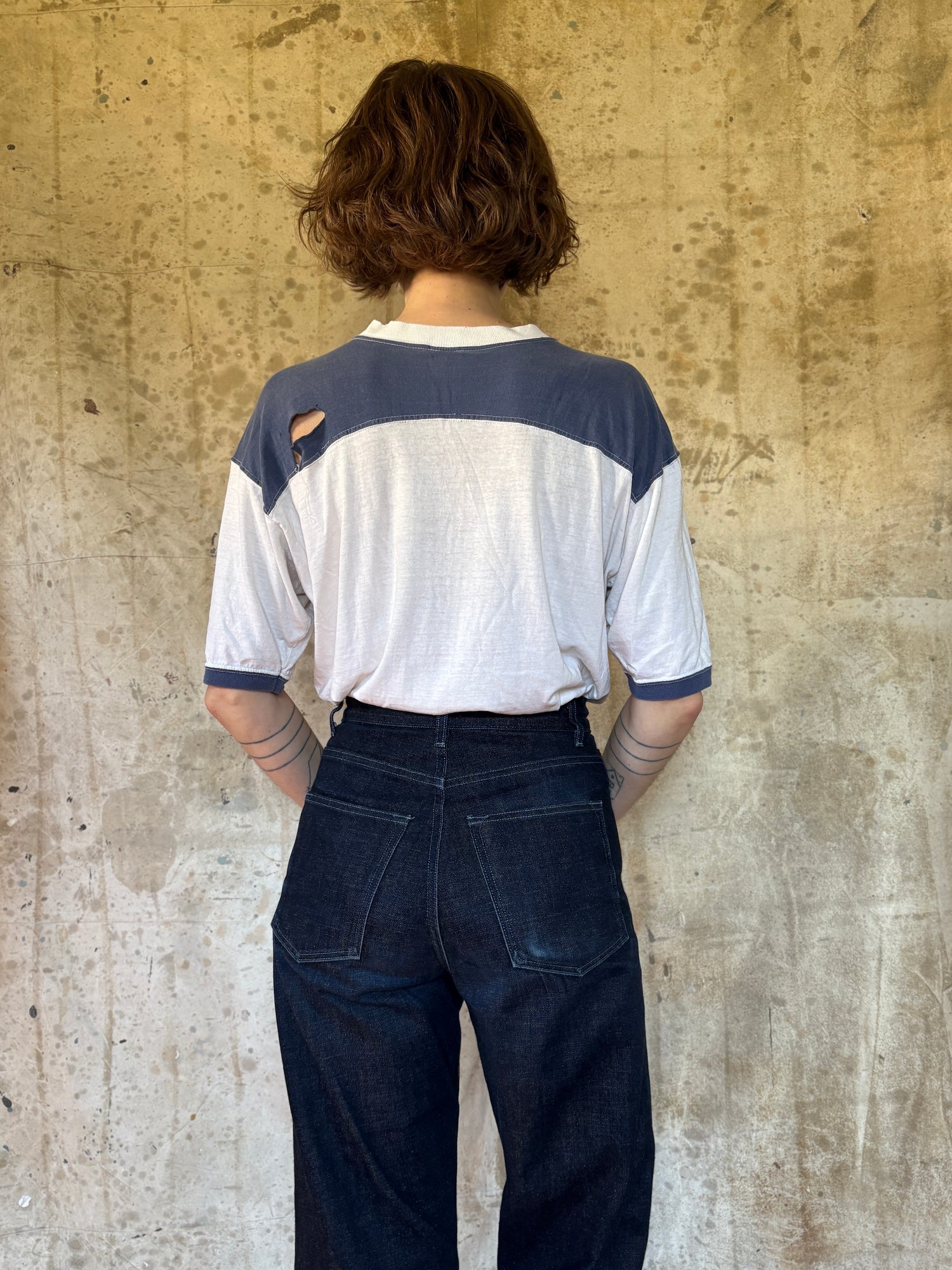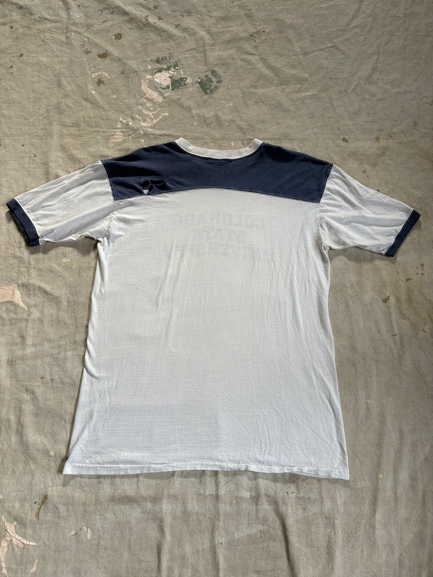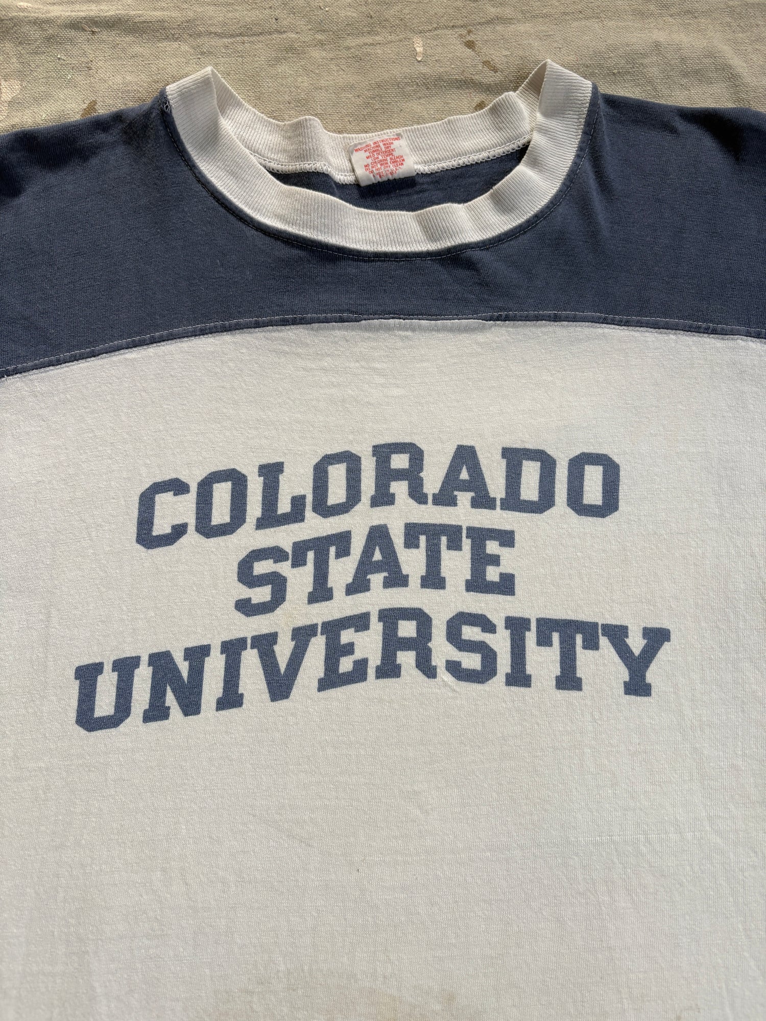 Water print lettering on an all cotton, USA made, Collegiate Pacific tee.