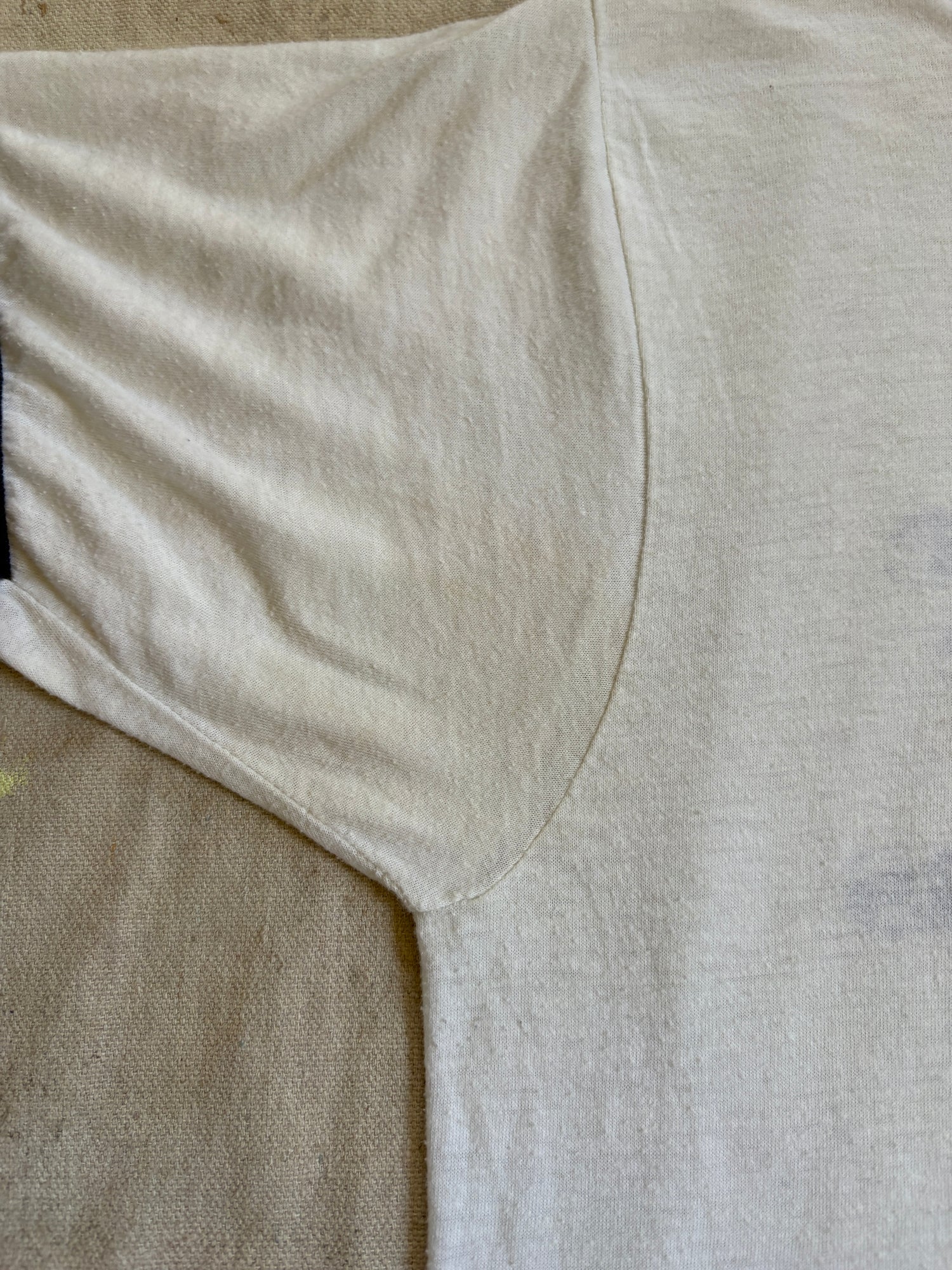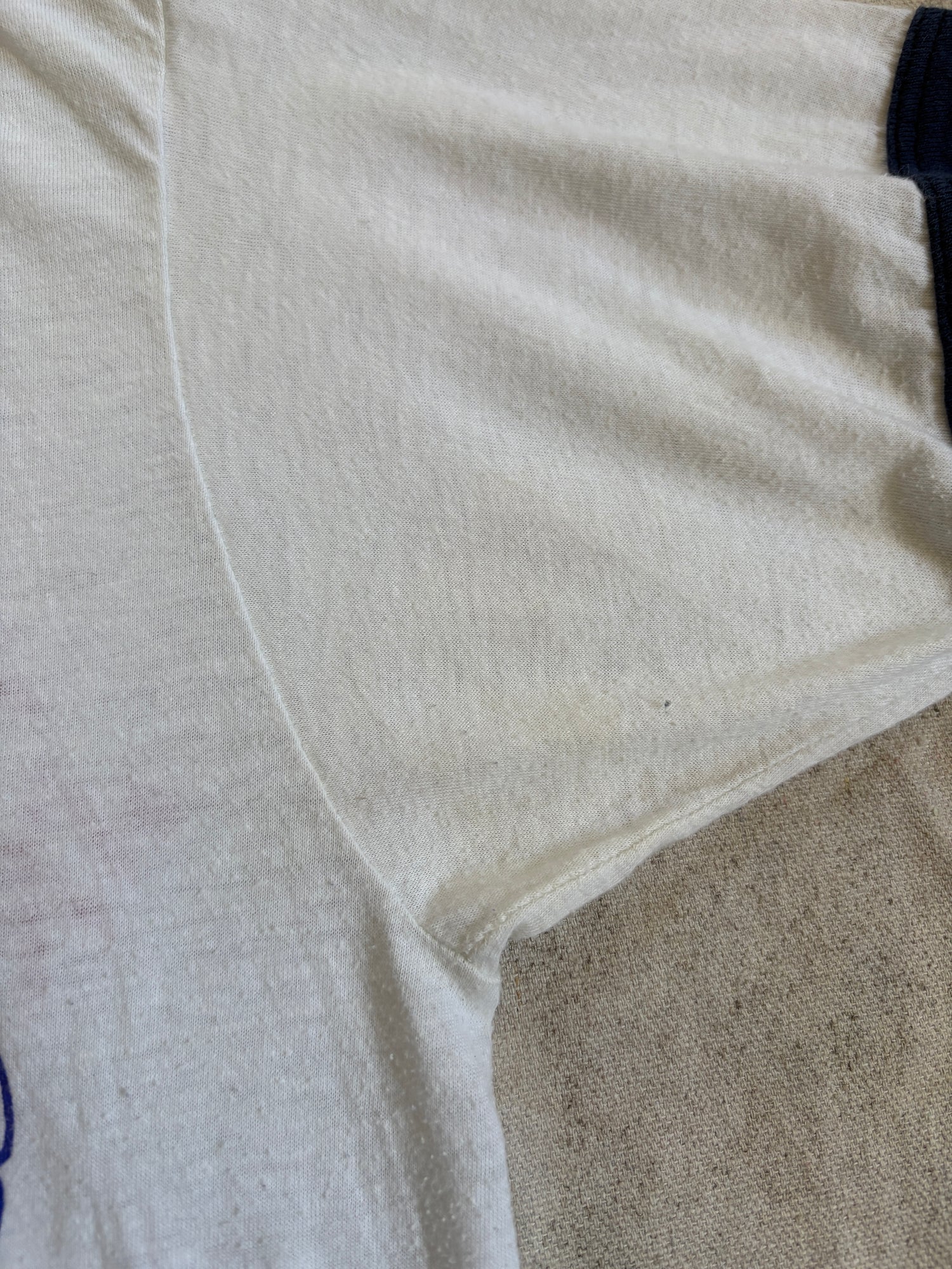 Faint discoloring at the underarms. Please carefully review photos.